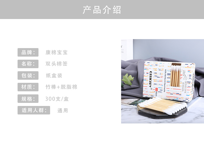 300支竹棒双头棉签纸盒 化妆卫生一次性卫生棉棒厂家批发定制 – 康民棉签工厂