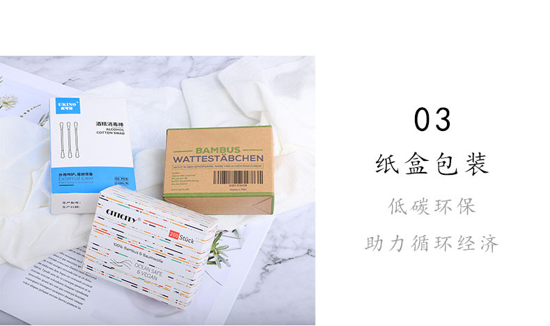 包装 常用包装为:塑料袋、塑料盒装、纸盒装、吸卡装、挂卡装等。 根据不同包装需求,10根-600根每包/盒,支持定制 应用 日用、化妆、耳朵清洁、婴儿护理、宠物护理、艺术/工艺品/机器/电脑/清洁。
