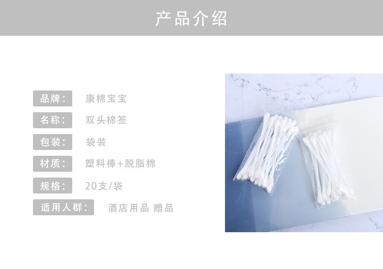 20支双头塑料棒棉签酒店宾馆一次性卫生棉棒消毒清洁棉签棒 – 康民棉签工厂